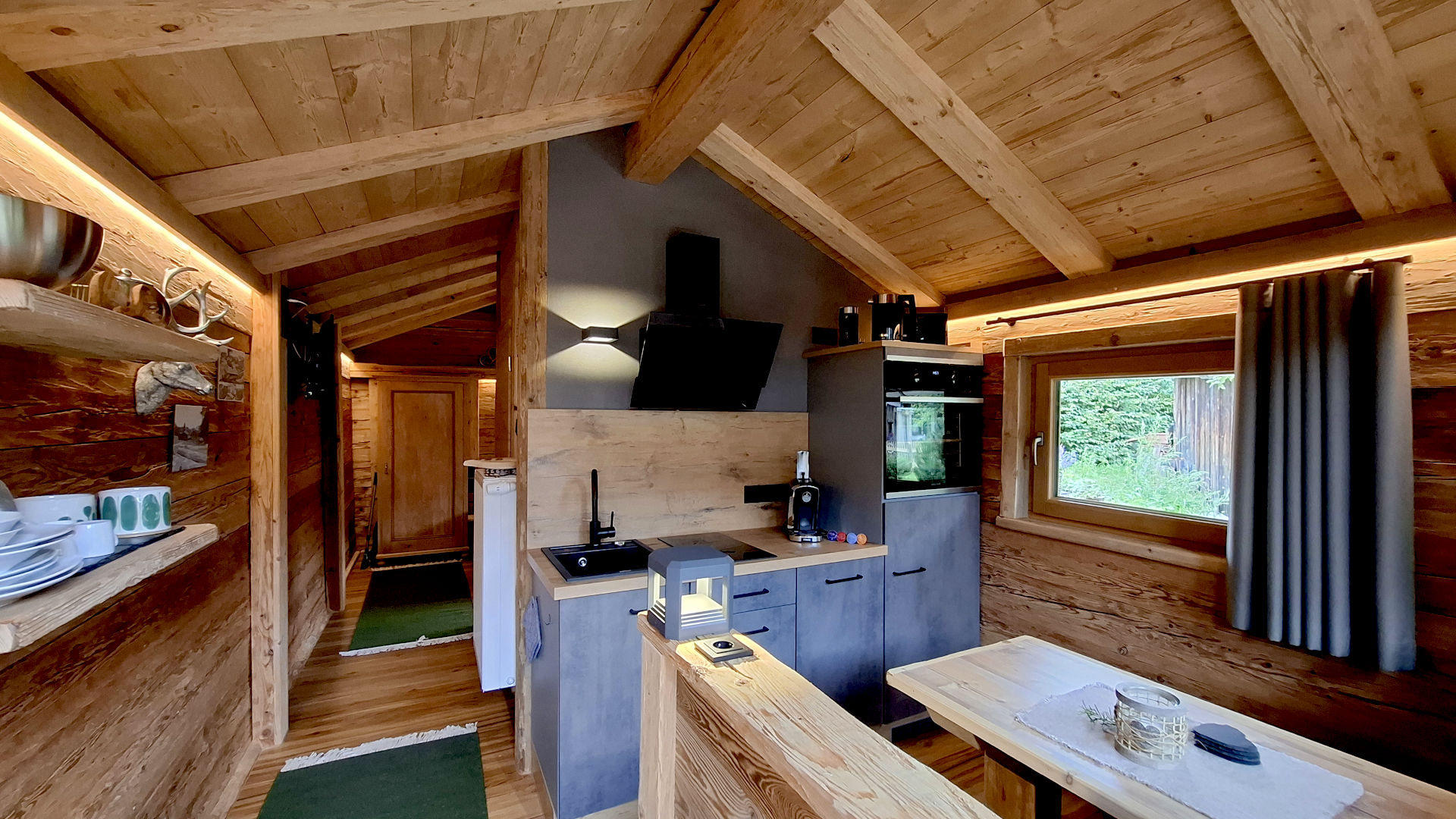 Das Chalet Gundhütte befindet sich im Außenbereich und schon der erste Blick erinnert an eine urige Almhütte. Im Innenbereich verbindet sich moderner Flair mit dem Charme einer romantischen Hüttenbernachtung.