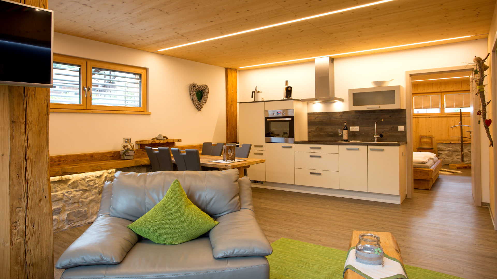 Pro Chalet / Appartement ist nur ein Parkplatz möglich, bei Chalet Platzhirsch sind 2 Parkplätze möglich.Küche